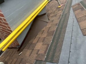 煙突と屋根材の接合部分が、板金で保護されていませんでした。