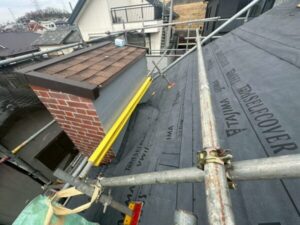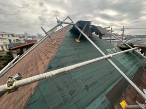 構造上、屋根材同士の重なりや継ぎ目は存在するため、水の侵入を完全に防ぐことは難しく、防水層としてのルーフィングが不可欠です!今回はTAJIMA社製の耐久性の高いルーフィングを選定致しました。