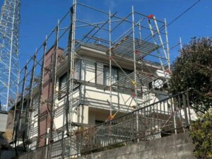 足場を組み立てて工事開始へ。