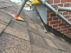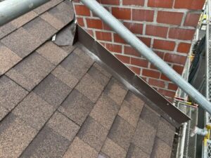 問題箇所であった煙突と屋根の取り合い部分も、水切り板金を設置し完全にブロックしておきます。